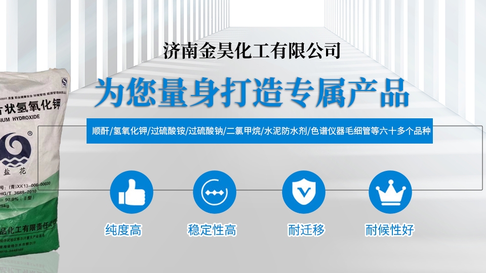 我公司是一家集、研發(fā)、貿(mào)易為一體的綜合性化工公司。主要涵蓋無機(jī)化工產(chǎn)品、化工產(chǎn)品、實驗儀器等幾大系列。主營產(chǎn)品為氫氧化鉀、過硫酸銨、過硫酸鈉、順酐、二氯甲烷、水泥防水劑、色譜儀器毛細(xì)管等六十多個品種。產(chǎn)品主要用于農(nóng)藥、農(nóng)肥、水處理、制藥、造紙、冶金、建筑添加劑、橡膠制造等多個領(lǐng)域。 歲月不居,時節(jié)如流。公司于2006年成立,如今已十幾個年頭了。一路走來我們一步一個腳印,兢兢業(yè)業(yè),誠信經(jīng)營,如今公司已發(fā)展成為年銷售額近陸仟萬元...